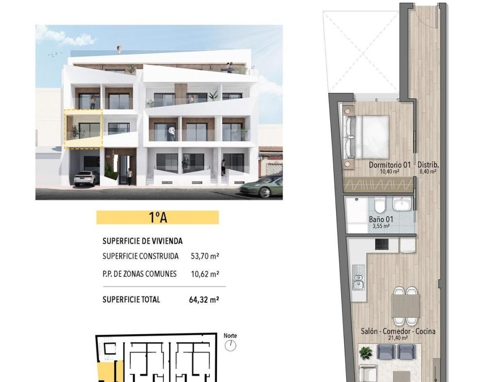 This newly built apartment building is located just 250 meters from the famous El Cura Beach in Torrevieja, offering residents easy access to one of the most popular beaches in the area. The building consists of 17 units, featuring 1 and 2-bedroom apartments, each with 1 or 2 bathrooms. Additionally, there are penthouses available with private solariums and stunning sea views, perfect for enjoying the Mediterranean lifestyle.