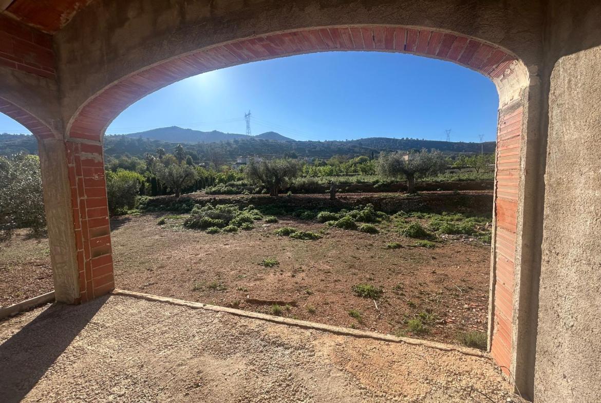 The property offers 165 m² built (145 m² usable) on a spacious 4,230 m² plot, providing a private setting surrounded by nature. It currently features an open-plan layout with 1 bedroom and 1 bathroom, allowing it to be easily adapted to suit the future owner’s needs.